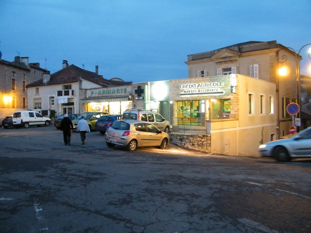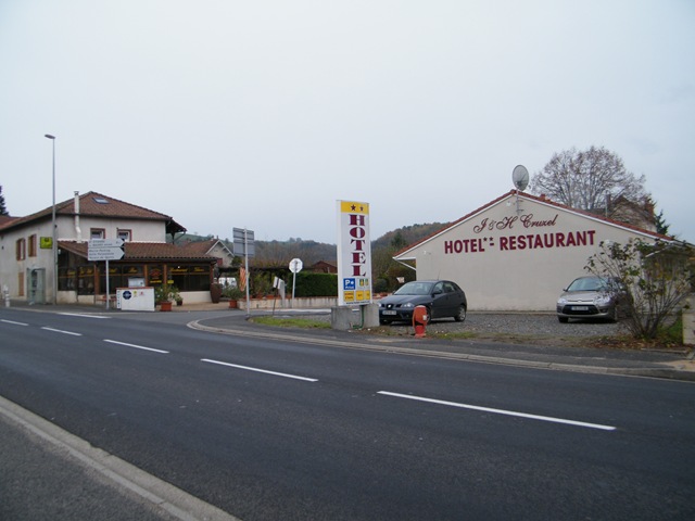 By the time Yanec returned us to Cahors it was well and truly dark. He had done a superb job of showing us these properties, including spending time showing us some more incredible villages, like Prayssac, in the surrounding area. We still had to travel to Figeac which was around 65kms away via a winding road alongside the River Lot. Upon arrival there we quickly located a Pizzeria (yes, in France) at which we shared the best Pizza Mexicane and delicious ‘kebab salade‘ (slices of kebab-style meats, as well as nuts, scattered through the leafy salad) that we had ever tasted! What a treat! We finally found our bed for the night, 22kms further on, booked via the Internet (thank heavens for the internet!), DSCF0364a wonderful little 2 star place called Hotel Restaurant Cruzel,  independently owned and run by the delightful Jean-Henri & Helene. On one level, it is more of a motel style of accommodation, very clean and compact, totally adequate for travellers and quite inexpensive. A nutritious breakfast is provided as well as a roaring fire in the fireplace, when necessary.